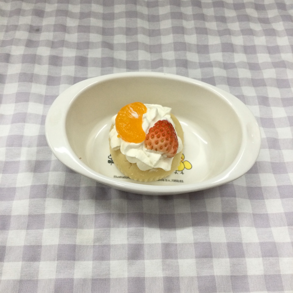 昼食ごはんチキンカツ ケチャップソースクリスマスサラダ野菜のスープバナナおやつ牛乳クリスマスケーキ今日はクリスマス会チキンカツを作りました。園のカツは、先日のとんかつ同様焼いて仕上げる方法に挑戦中です。サラダは、写真では見えにくいですが、クリスマスツリーみたいだなと、盛り付けた時給食の先生の中で話題になりました。ブロッコリー、ツナ、コーン、人参のマヨネーズ味です。おやつは恒例のケーキ卵を使用しない生地を使っています。
